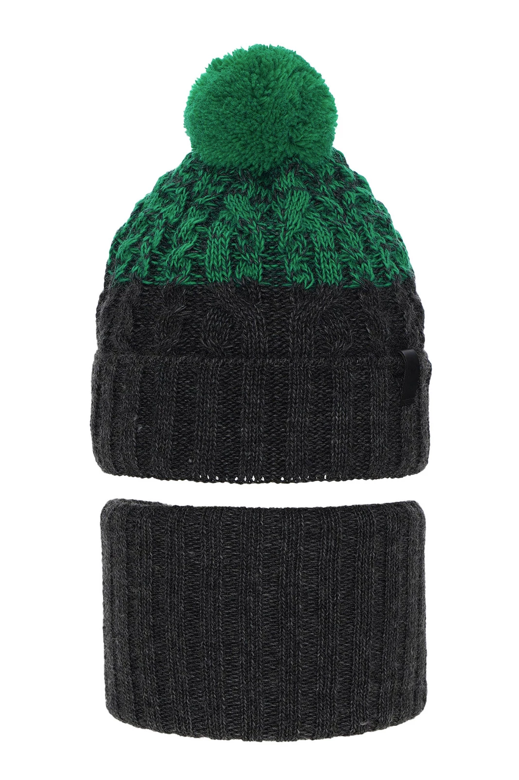 Czapka i komin dla chłopca zimowy komplet, szary, z pomponem Travis