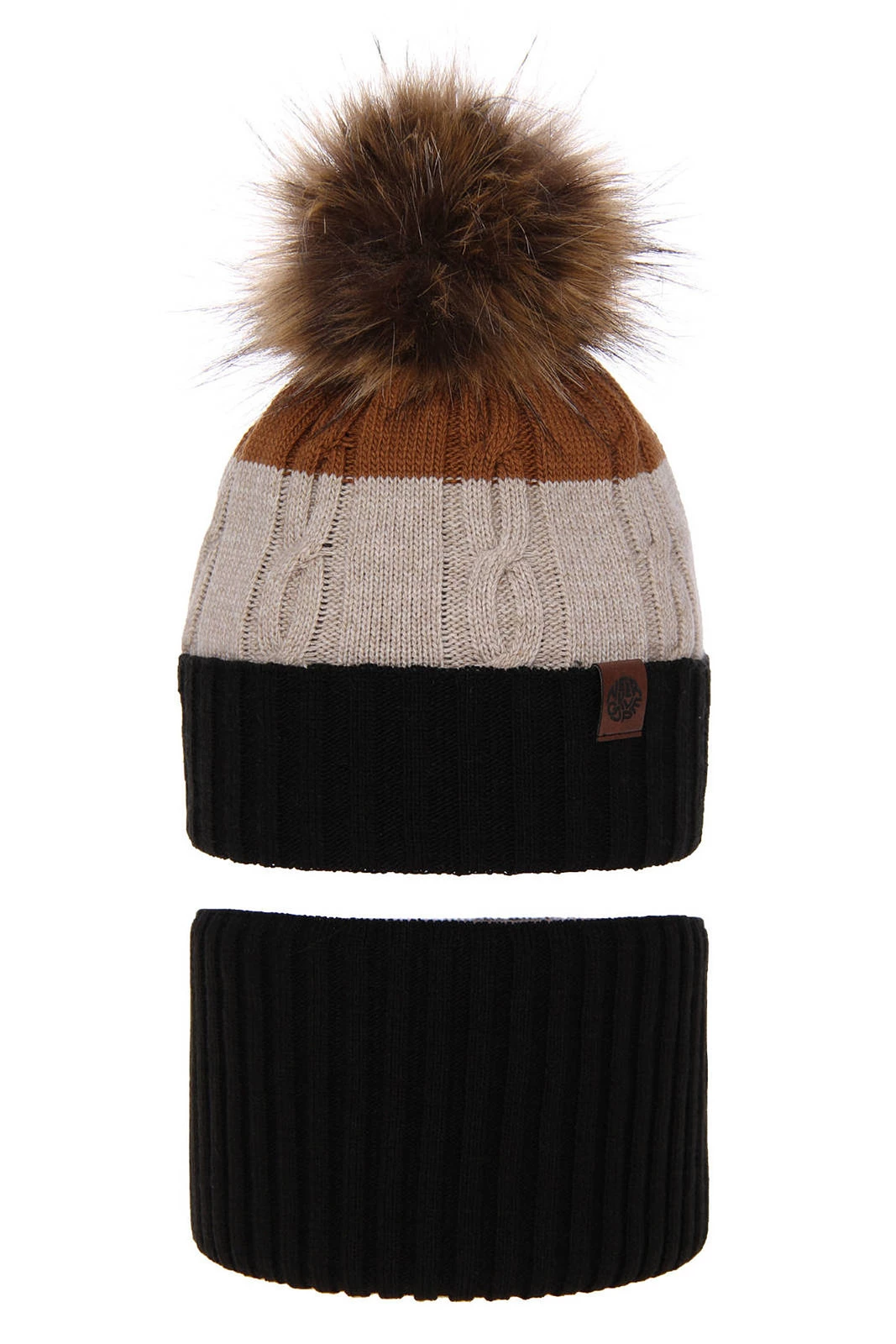 Czapka i komin dla chłopca zimowy komplet, czarny, z pomponem Karmel