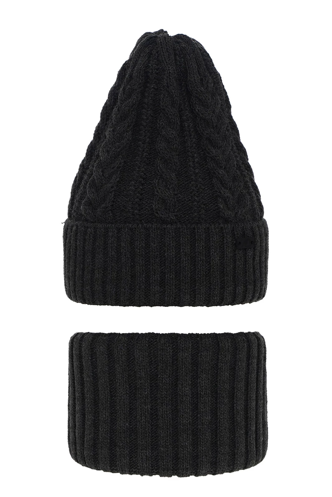 Czapka i komin dla chłopca zimowy komplet, ciemnoszary, z naszywką Colins