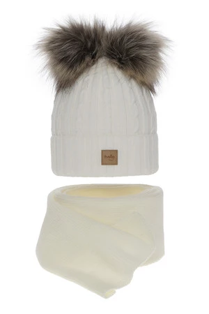 Czapka i szalik dla dziewczynki zimowy komplet, kremowy, z dwoma pomponami Zenda