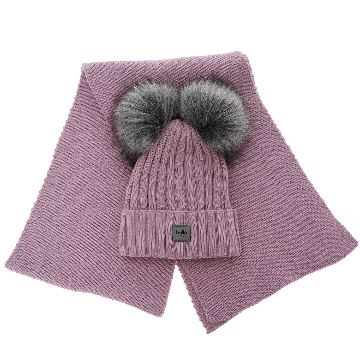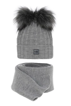 Czapka i szalik dla dziewczynki zimowy komplet, szary, z dwoma pomponami Zenda