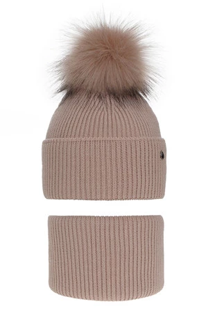 Czapka i komin dla dziewczynki zimowy komplet, różowy, z pomponem Reneta