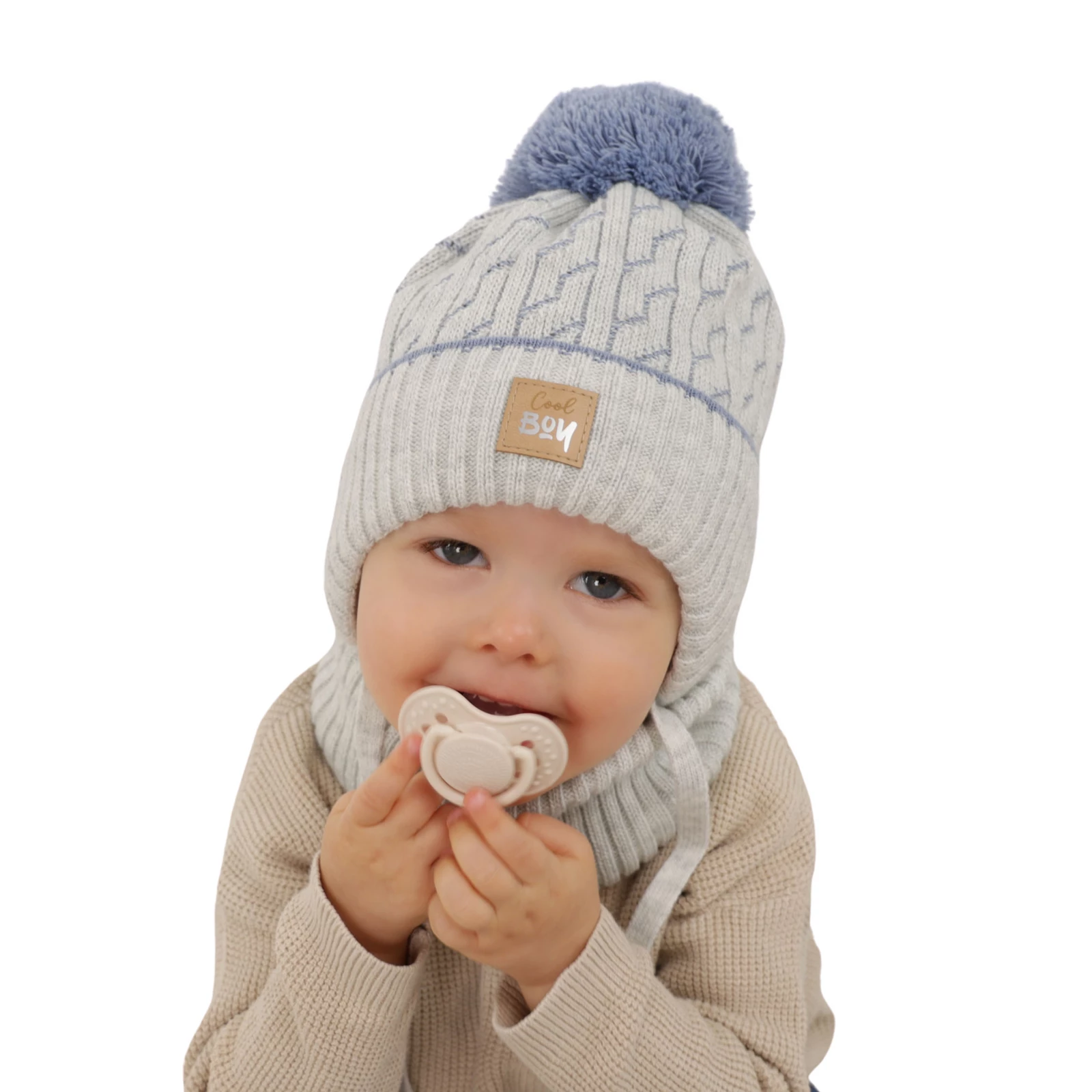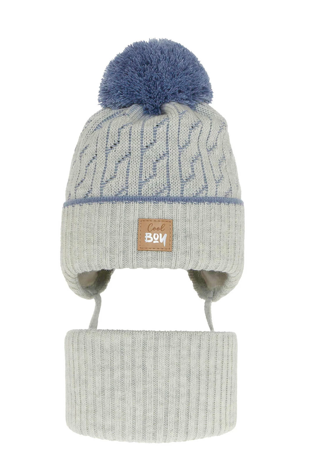 Czapka i komin dla chłopca zimowy komplet, szary, z pomponem Pikolo