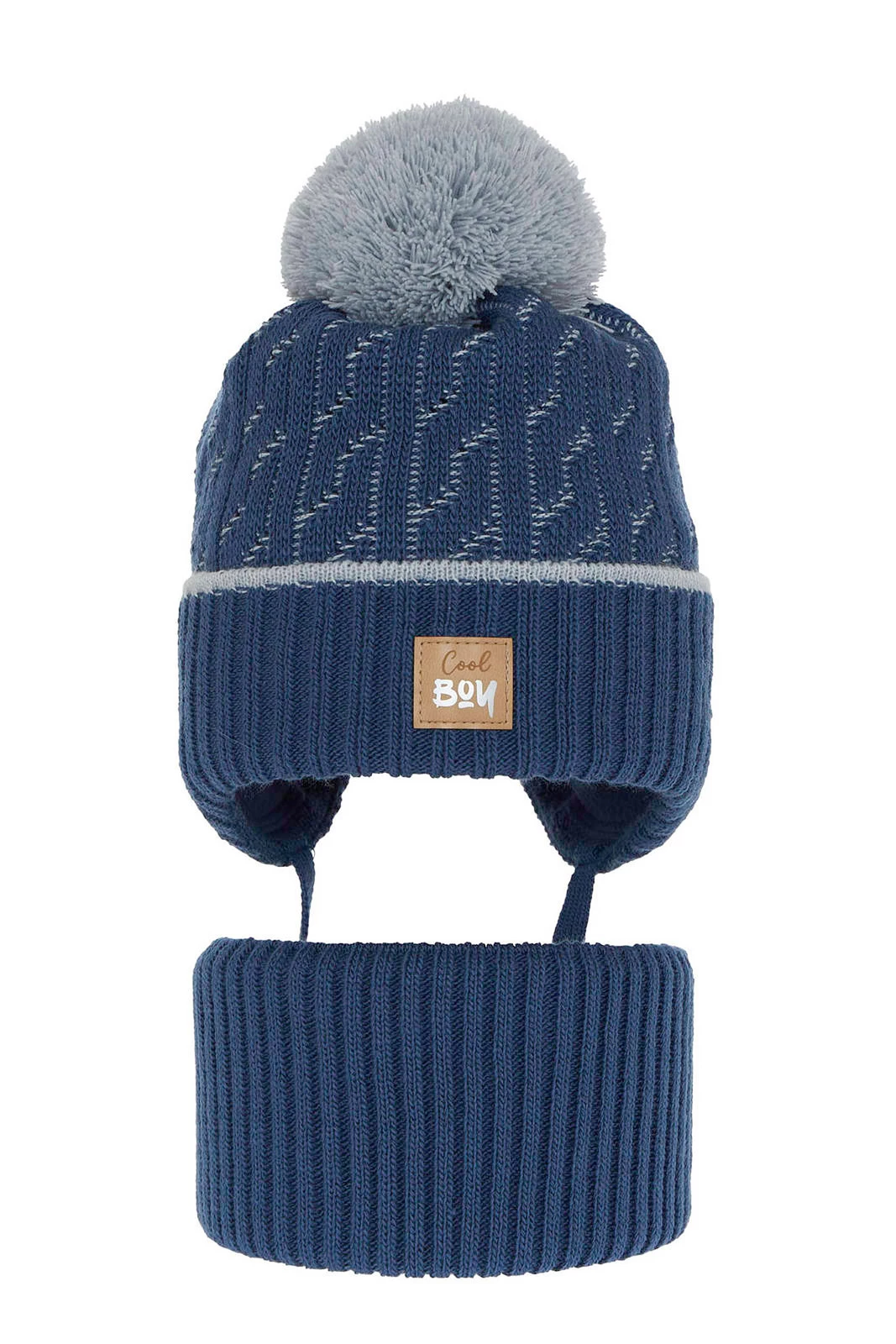 Czapka i komin dla chłopca zimowy komplet, niebieski, z pomponem Pikolo