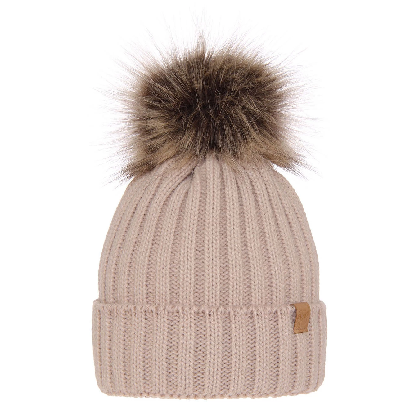 Czapka zimowa damska, beżowa, z pomponem Europa