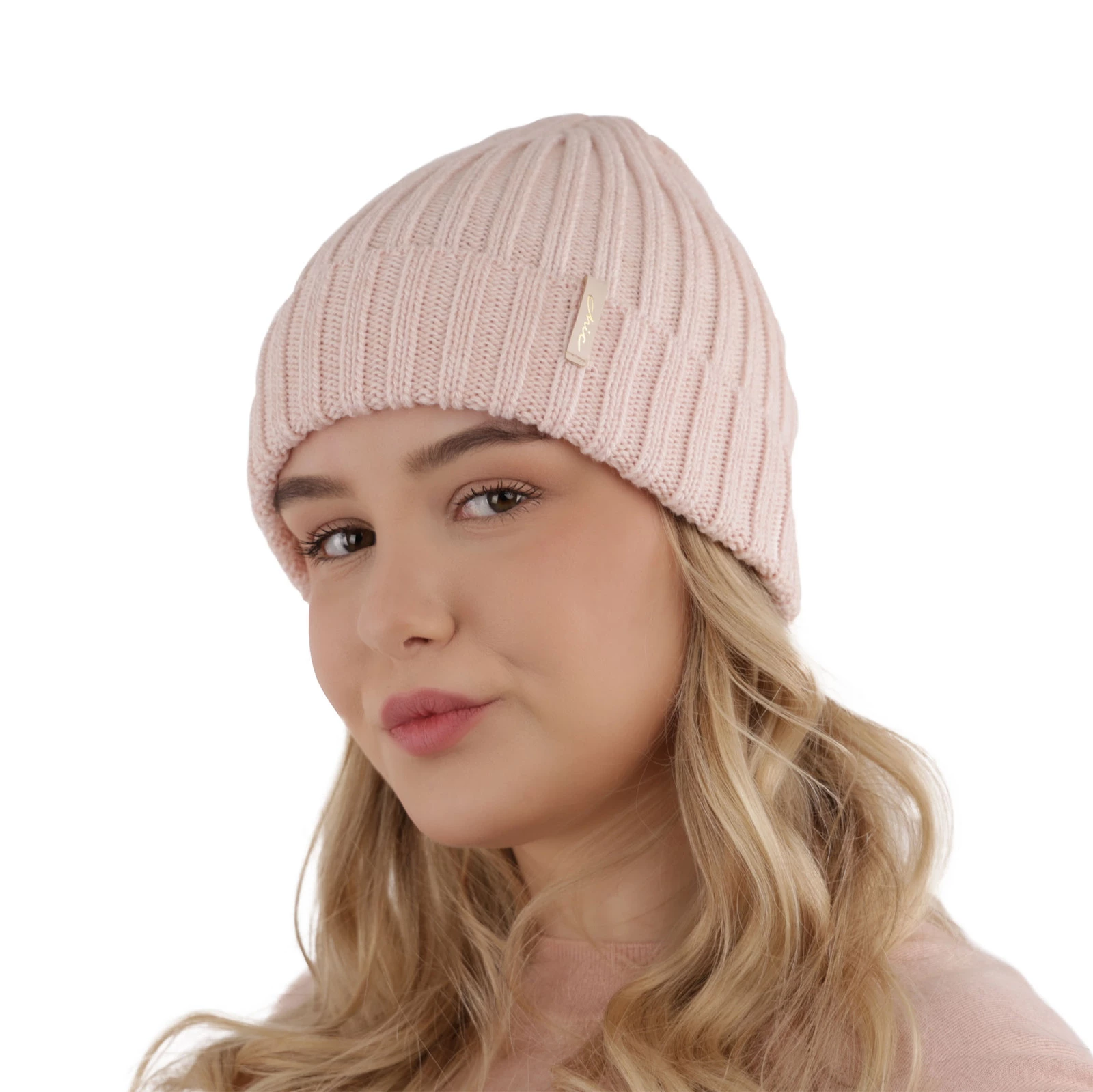 Czapka zimowa damska, różowa, z wełną merino Missi