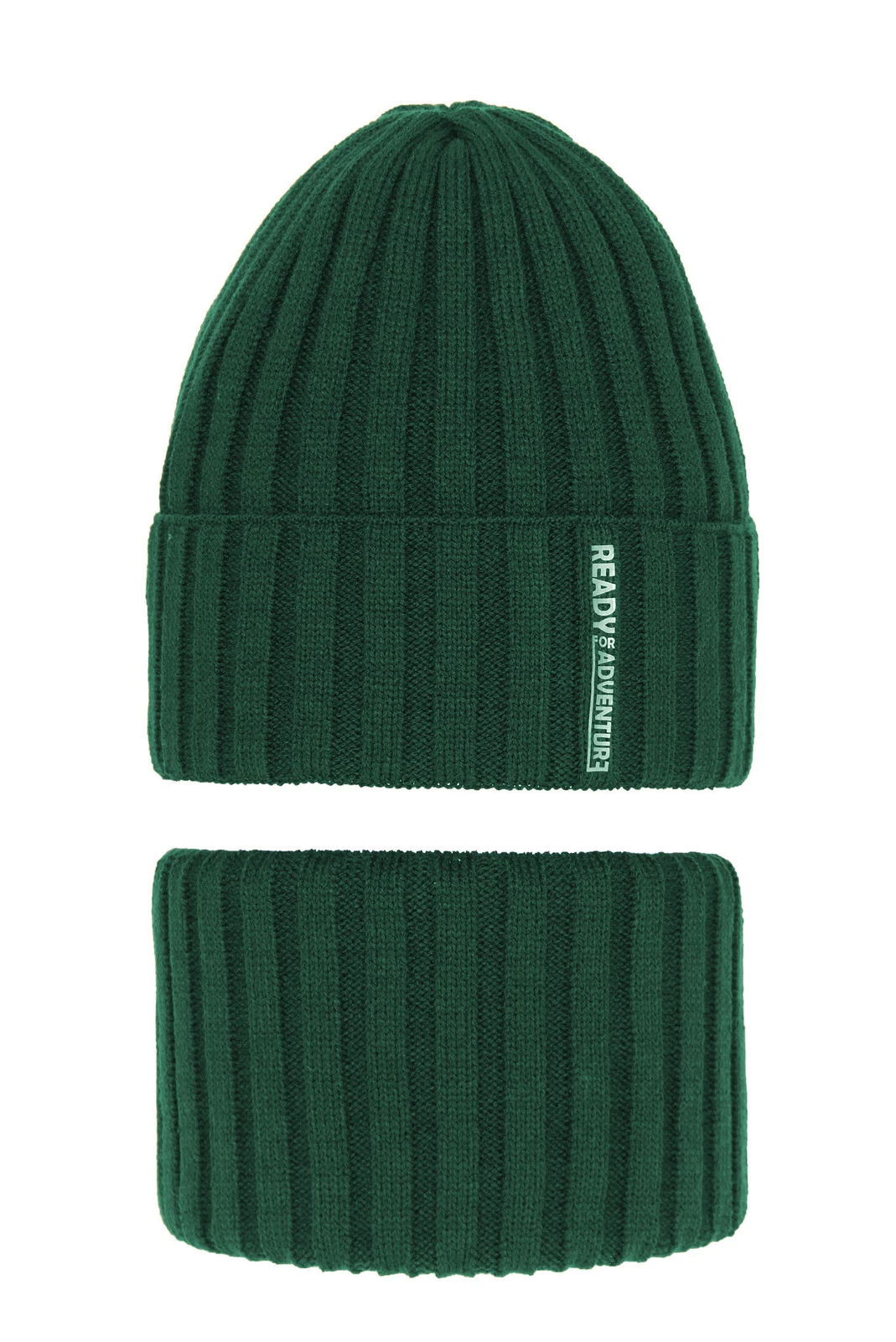 Czapka i komin dla chłopca zimowy komplet, zielony Livido