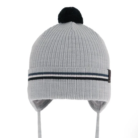 Czapka jesienna, wiosenna dla chłopca, błękitna, wiązana, z pomponem Vesper