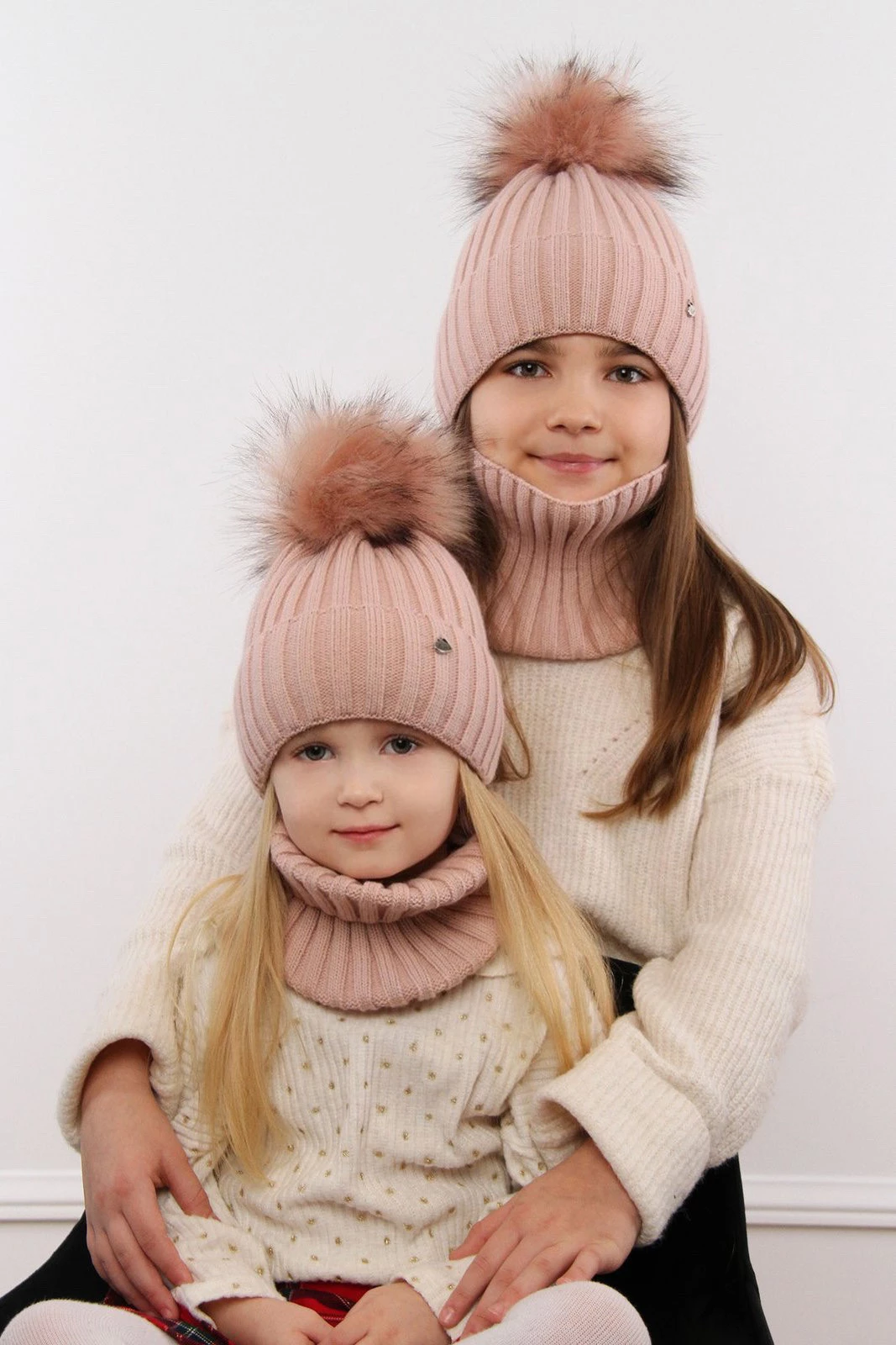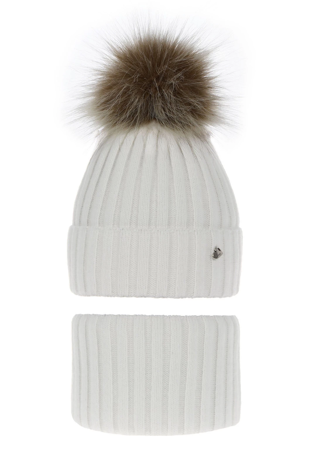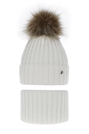Czapka i komin dla dziewczynki zimowy komplet, biały, z pomponem, Wilma