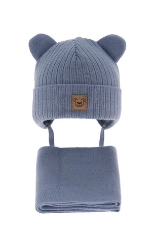 Czapka i szalik dla chłopca zimowy komplet, niebieski, wiązany Anthony