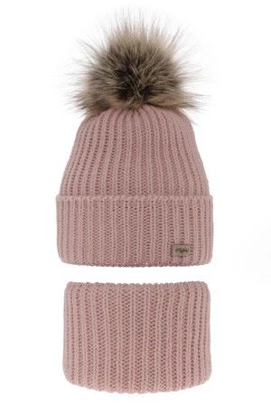 Czapka i komin dla dziewczynki zimowy komplet, różowy, z pomponem Willow