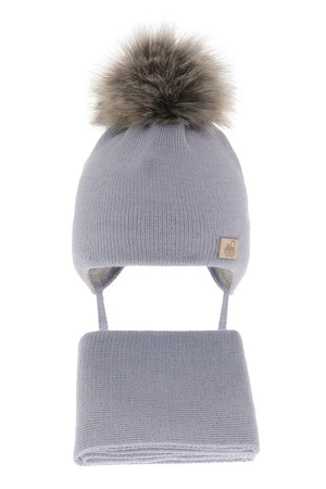 Czapka i szalik dla chłopca zimowy komplet, jasnoniebieski, wełniany merino, wiązany Anastazy