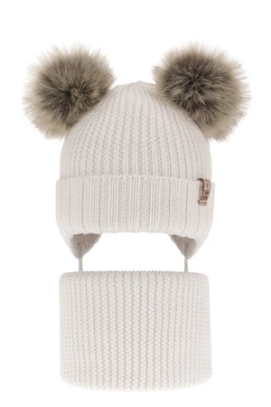 Czapka i komin dla chłopca zimowy komplet, biały, 100% wełniany merino, wiązany Konor