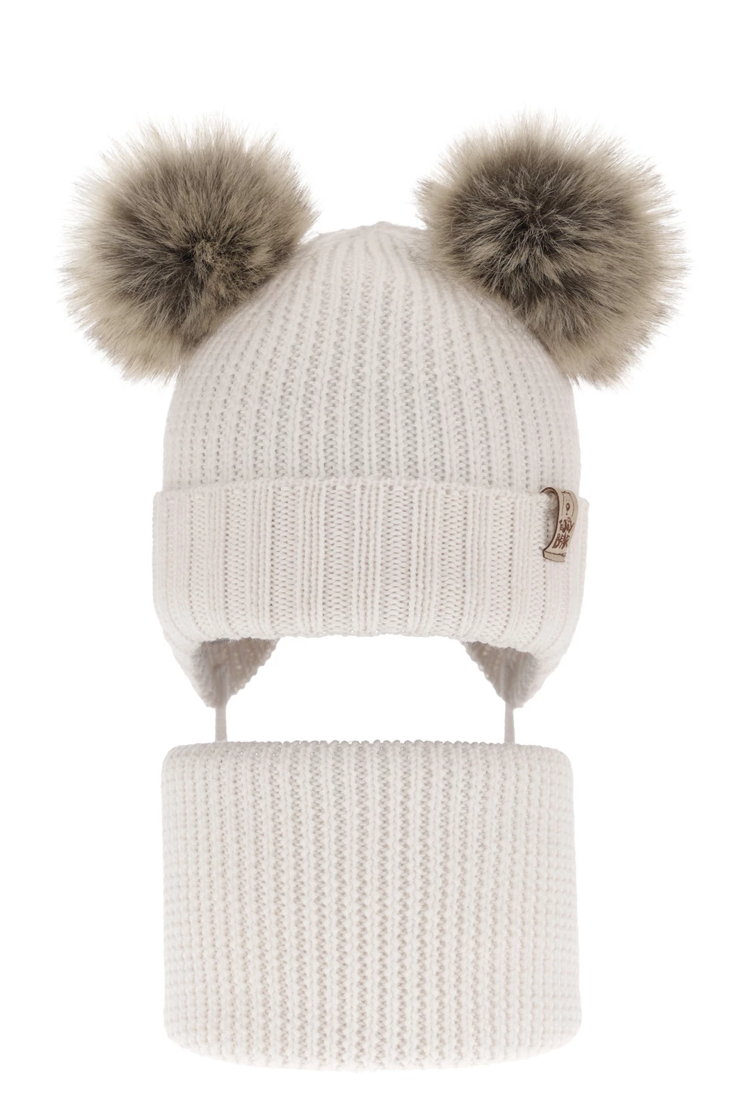 - Czapka ozdobiona dwoma uroczymi pomponami