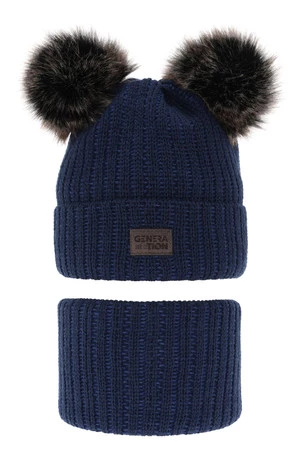 Czapka i komin dla chłopca zimowy komplet, granatowy, z dwoma pomponami Tokio
