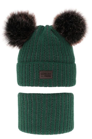 Czapka i komin dla chłopca zimowy komplet, zielony, z dwoma pomponami Tokio