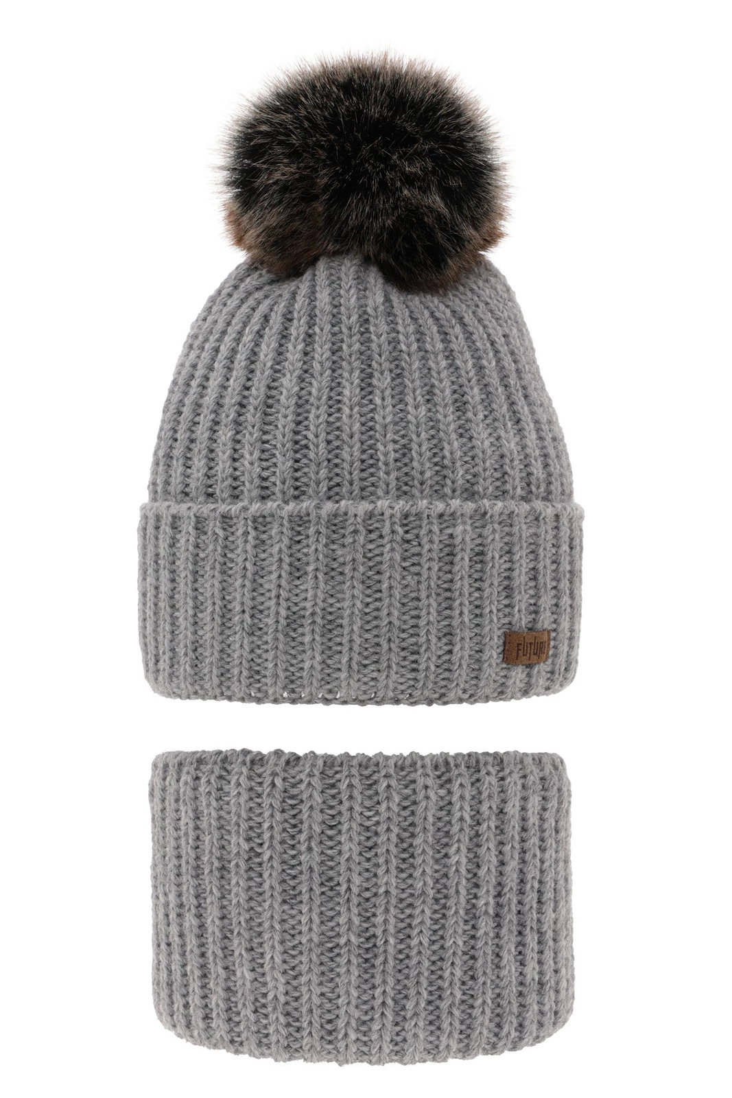 Czapka i komin dla chłopca zimowy komplet, szary, z pomponem Wonder