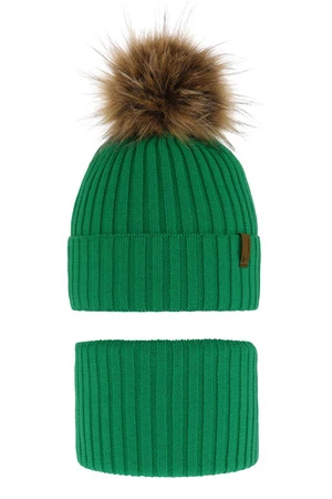 Czapka i komin dla chłopca zimowy komplet, zielony, z pomponem Onyks