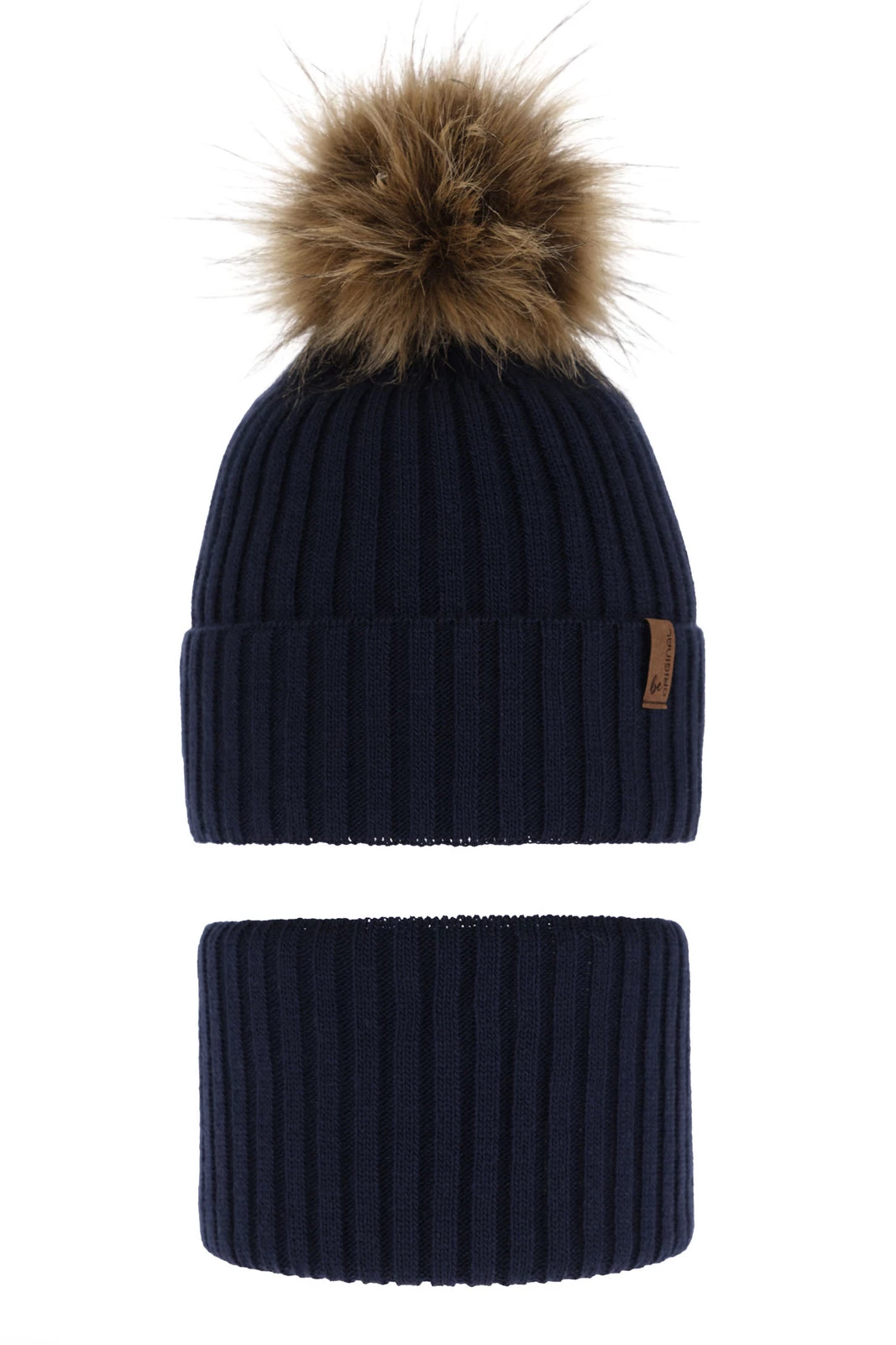 Czapka i komin dla chłopca zimowy komplet, granatowy, z pomponem Onyks