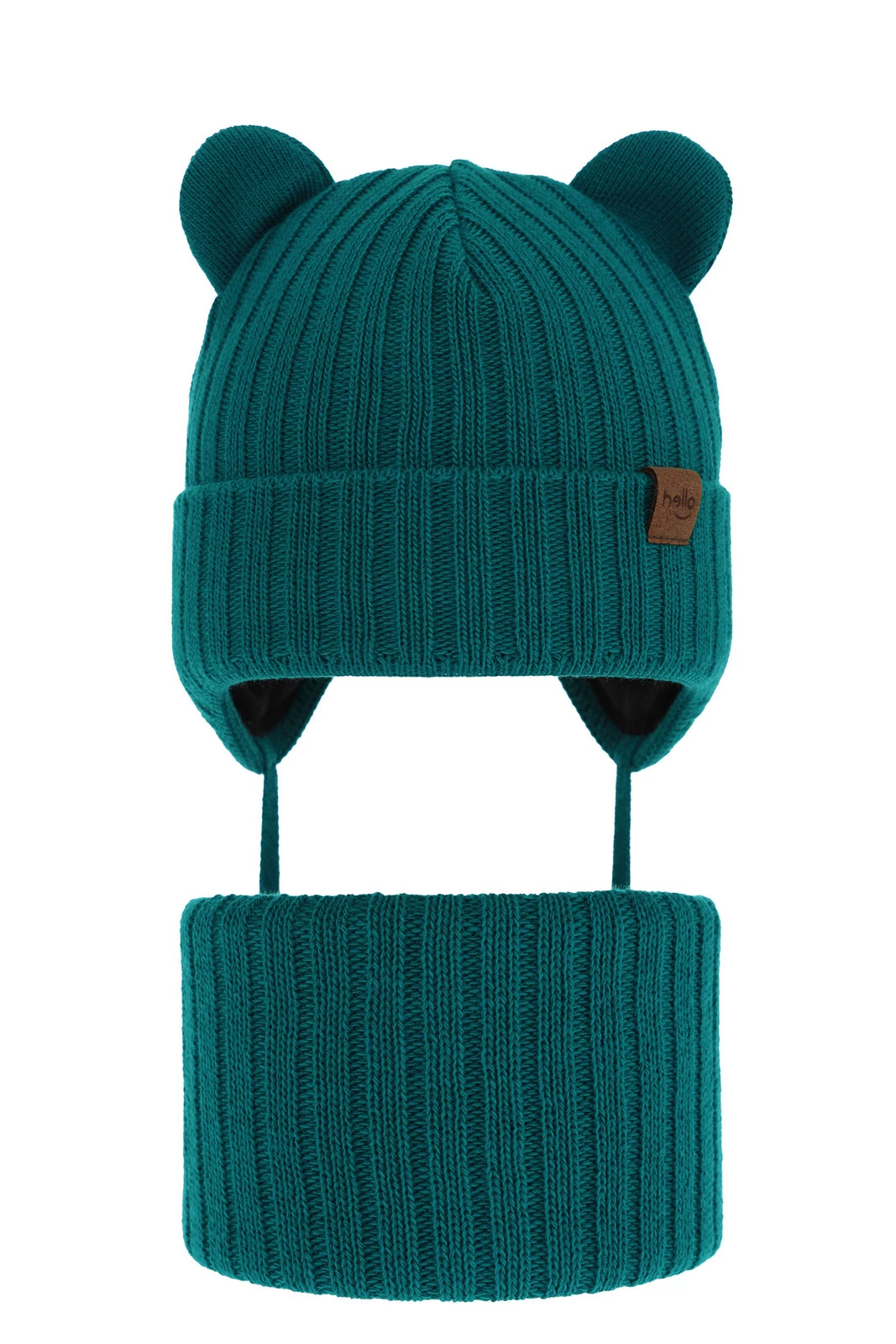 Czapka i komin dla chłopca zimowy komplet, szmaragdowy, wiązany Ferven