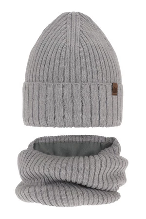 Czapka i komin dla chłopca zimowy komplet, jasnoszary, wełniany Metis