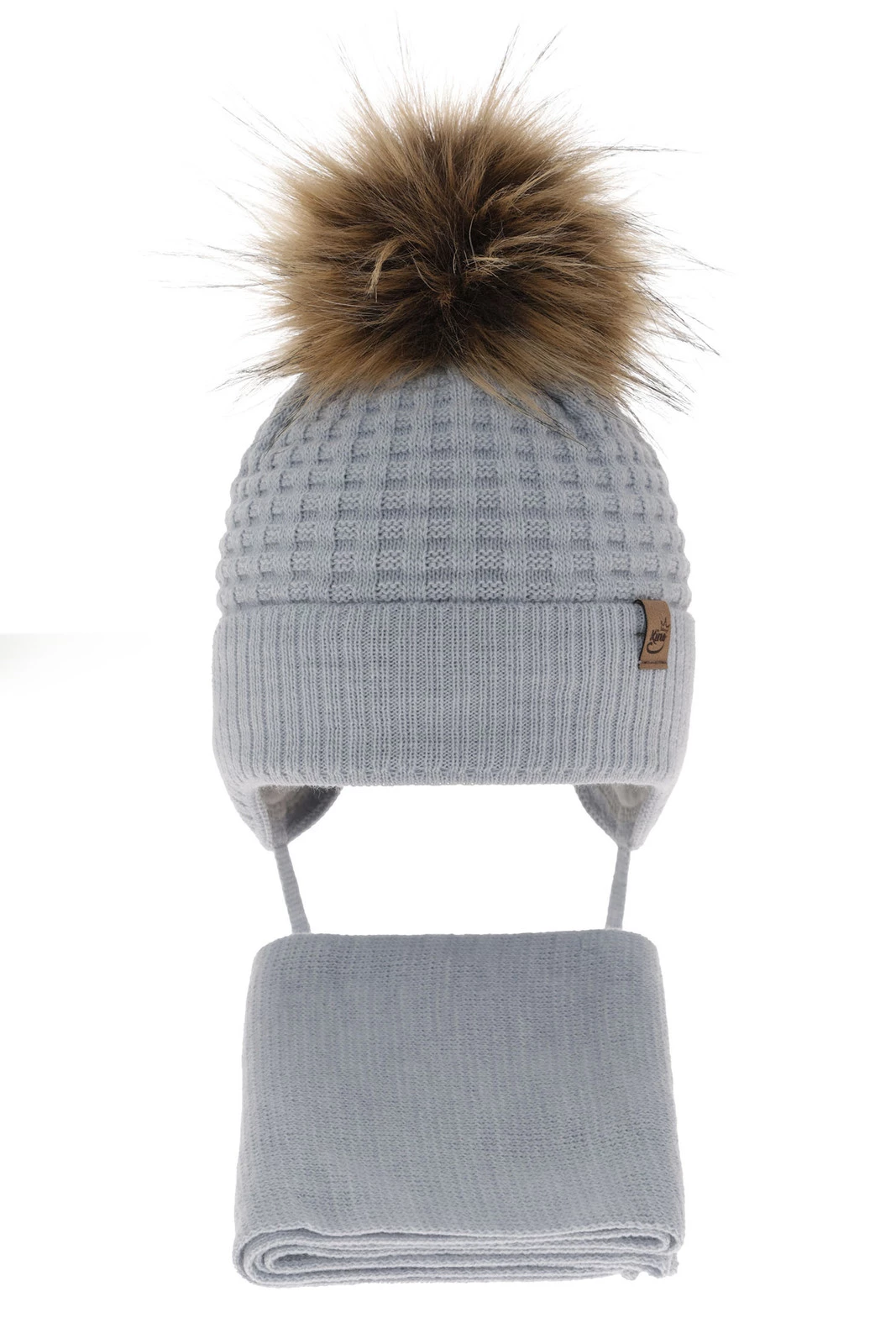 Czapka i szalik dla chłopca zimowy komplet, jasnoniebieski, wiązany Salem