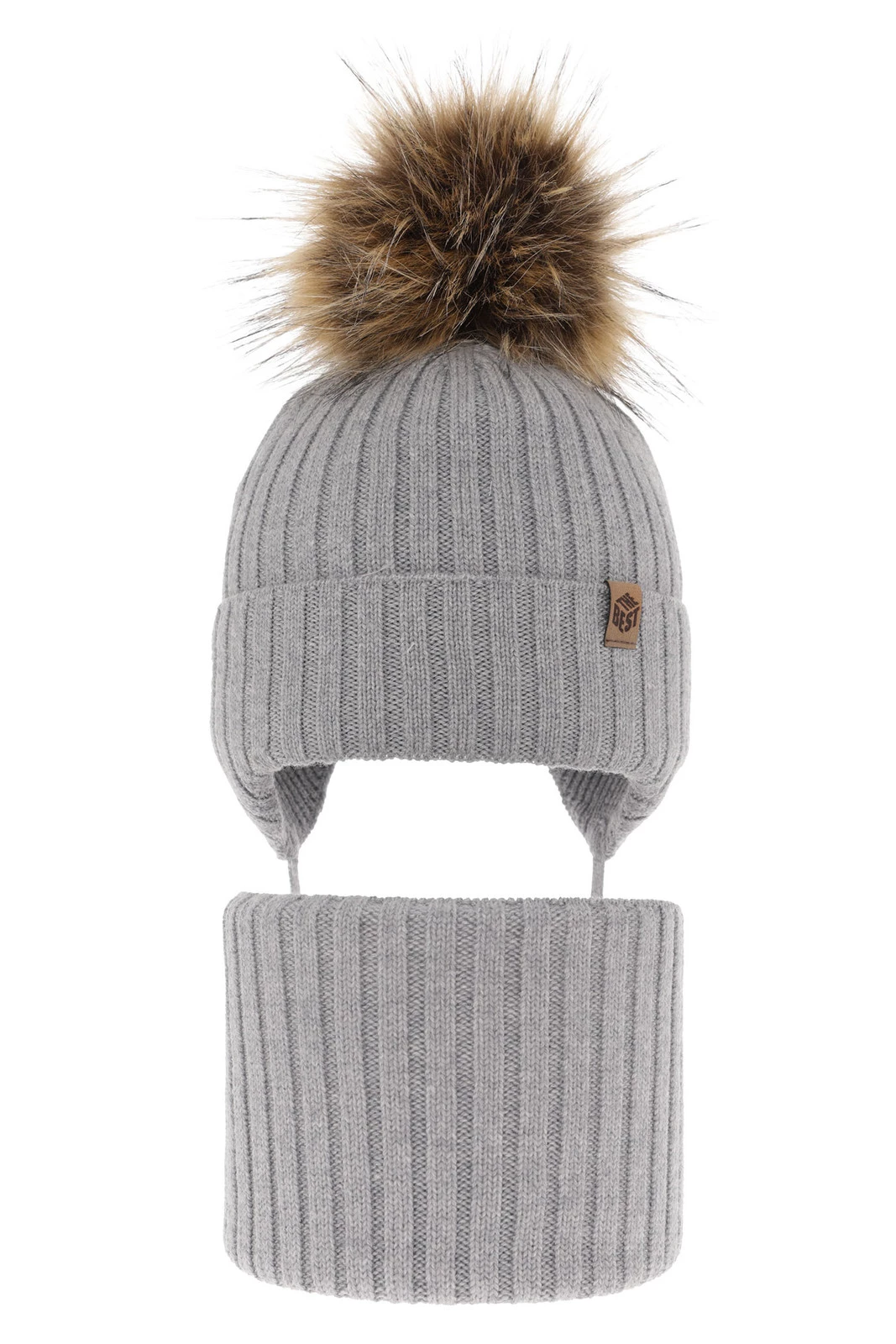 Czapka i komin dla chłopca zimowy komplet, szary, 100% wełniana merino, wiązany Juno