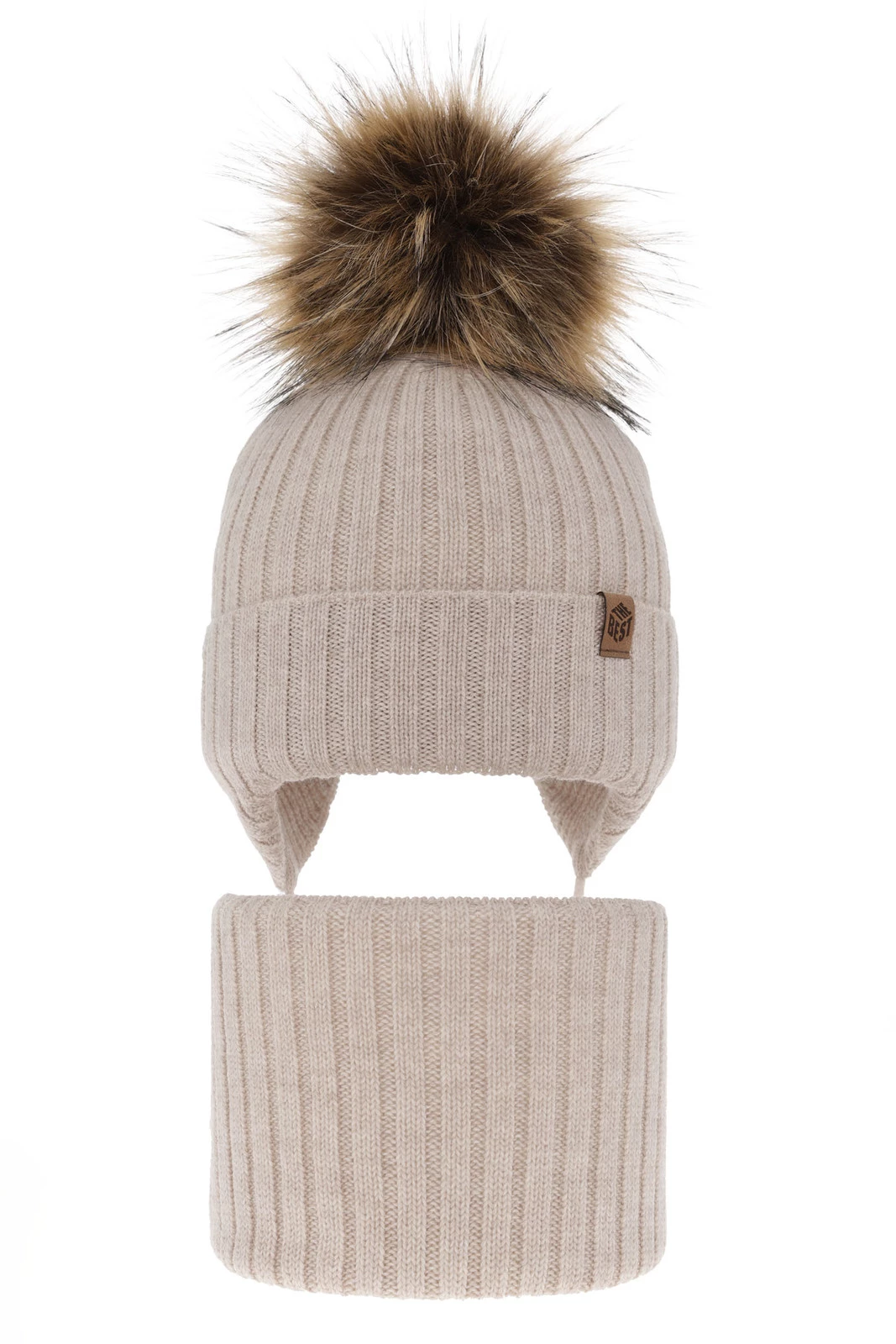 Czapka i komin dla chłopca zimowy komplet, beżowy, 100% wełniany merino, wiązany Juno