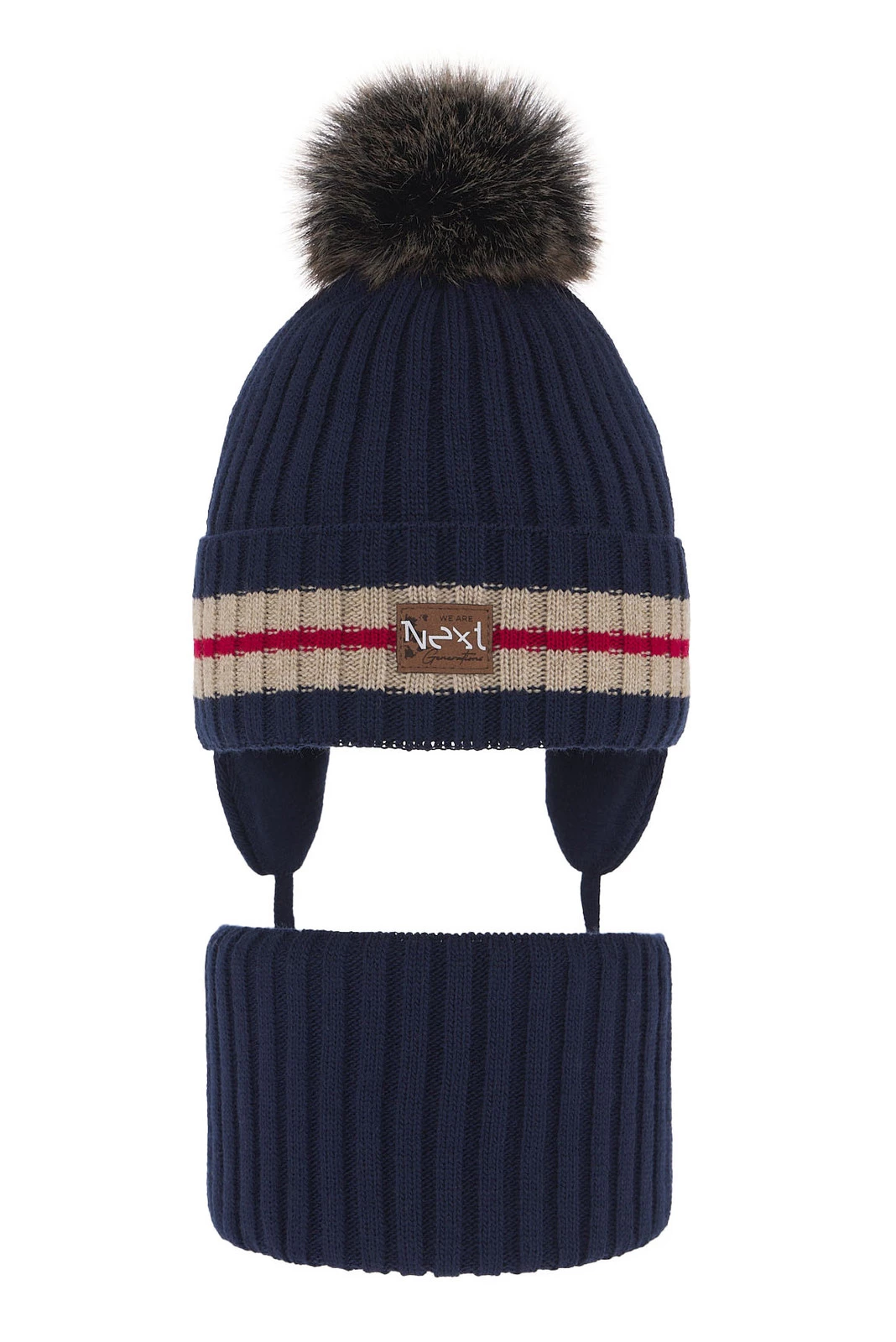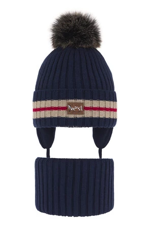 Czapka i komin dla chłopca zimowy komplet, granatowy, z pomponem Echo