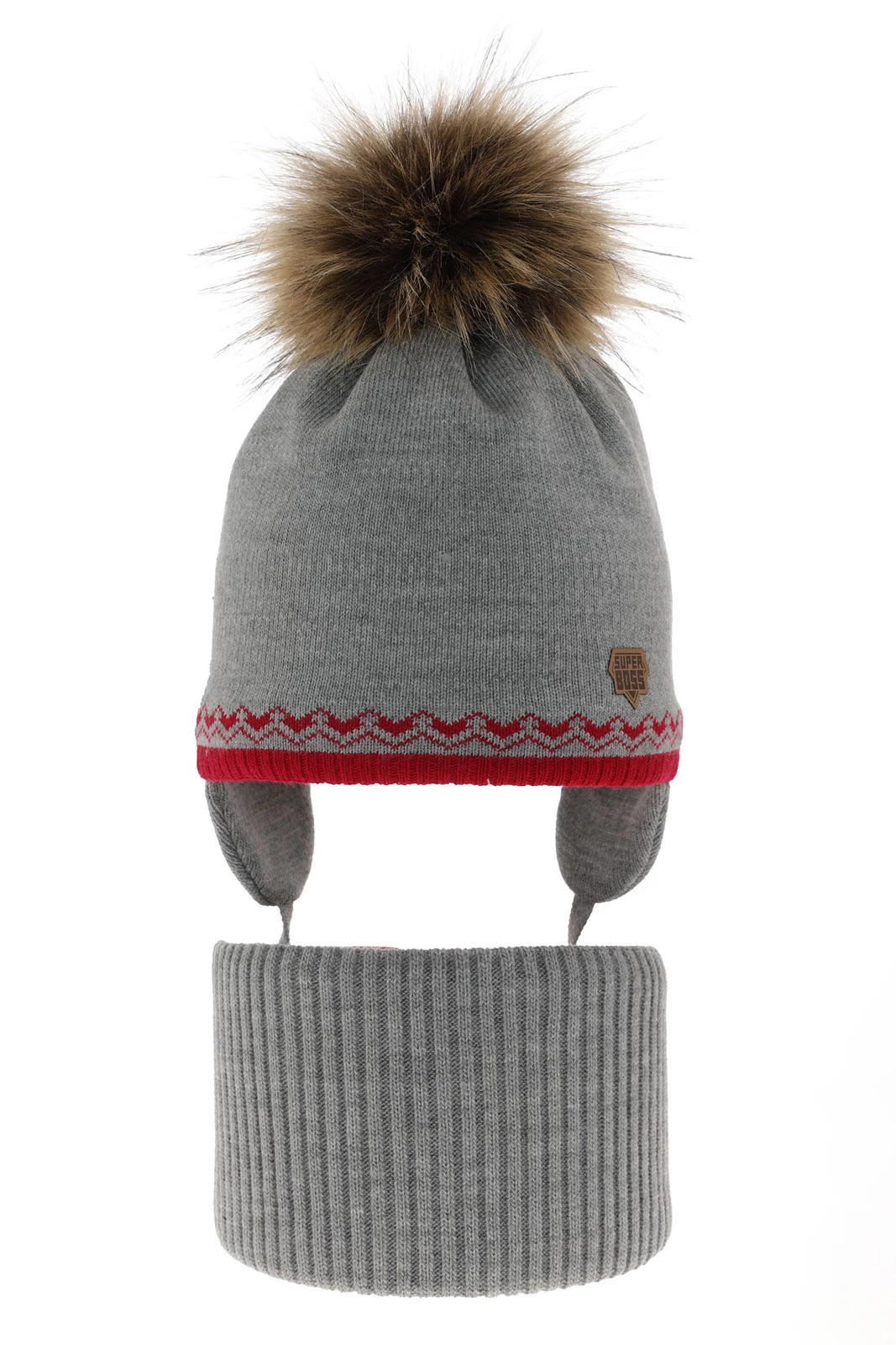Czapka i komin dla chłopca zimowy komplet, szary, z pomponem Elpis