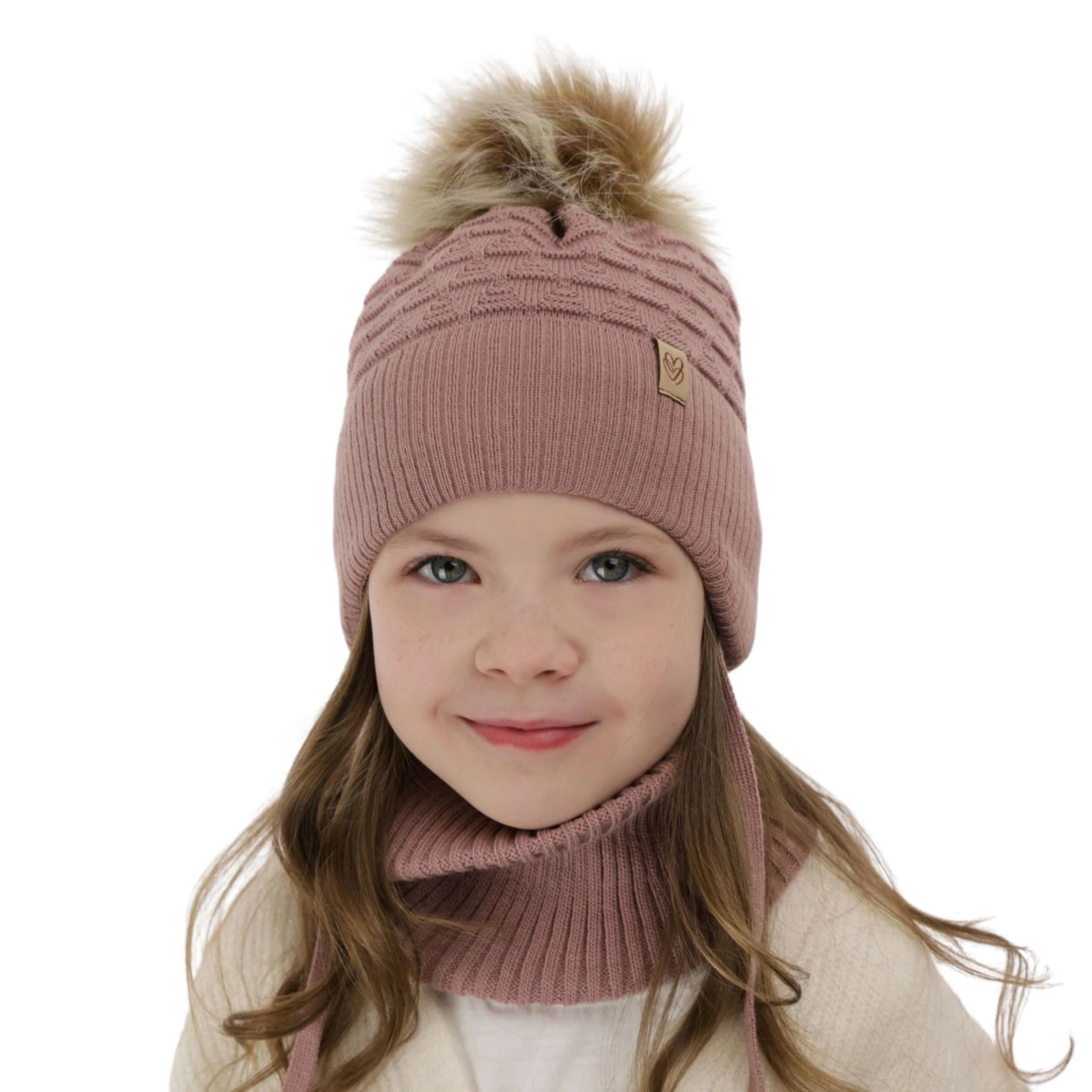 Czapka i komin dla dziewczynki zimowy komplet, wrzosowy, z pomponem Egeria
