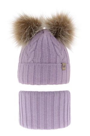 Czapka i komin dla dziewczynki zimowy komplet, fioletowy, z dwoma pomponami Amala