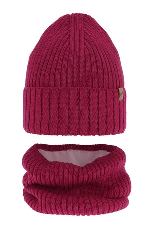 Czapka i komin dla dziewczynki zimowy komplet, różowy, wełniany merino Mesalia