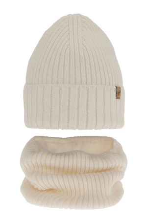 Czapka i komin dla dziewczynki zimowy komplet, kremowy, wełniany merino Mesalia