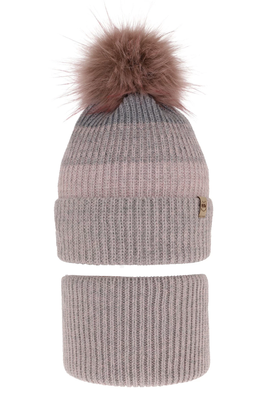 Czapka i komin dla dziewczynki zimowy komplet, szary, z pomponem Gimena