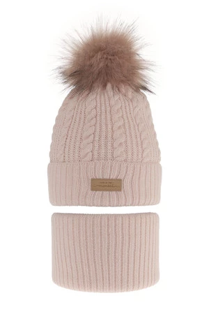 Czapka i komin dla dziewczynki zimowy komplet, różowy, z pomponem Alika