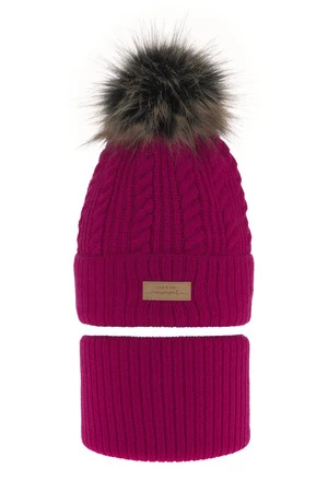Czapka i komin dla dziewczynki zimowy komplet, różowy, z pomponem Alika