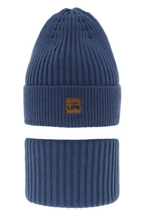 Czapka i komin dla chłopca zimowy komplet, niebieski Basilio