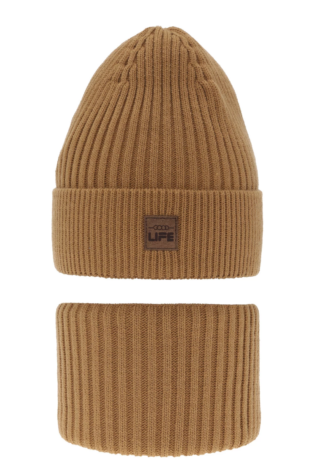 Czapka i komin dla chłopca zimowy komplet, camel Basilio