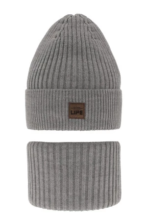 Czapka i komin dla chłopca zimowy komplet, szary Basilio