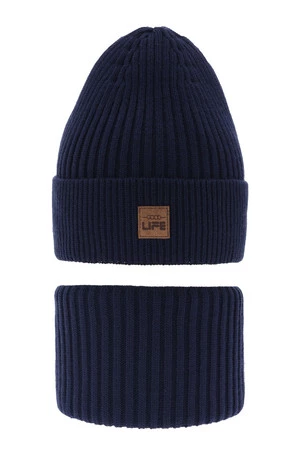 Czapka i komin dla chłopca zimowy komplet, granatowy Basilio