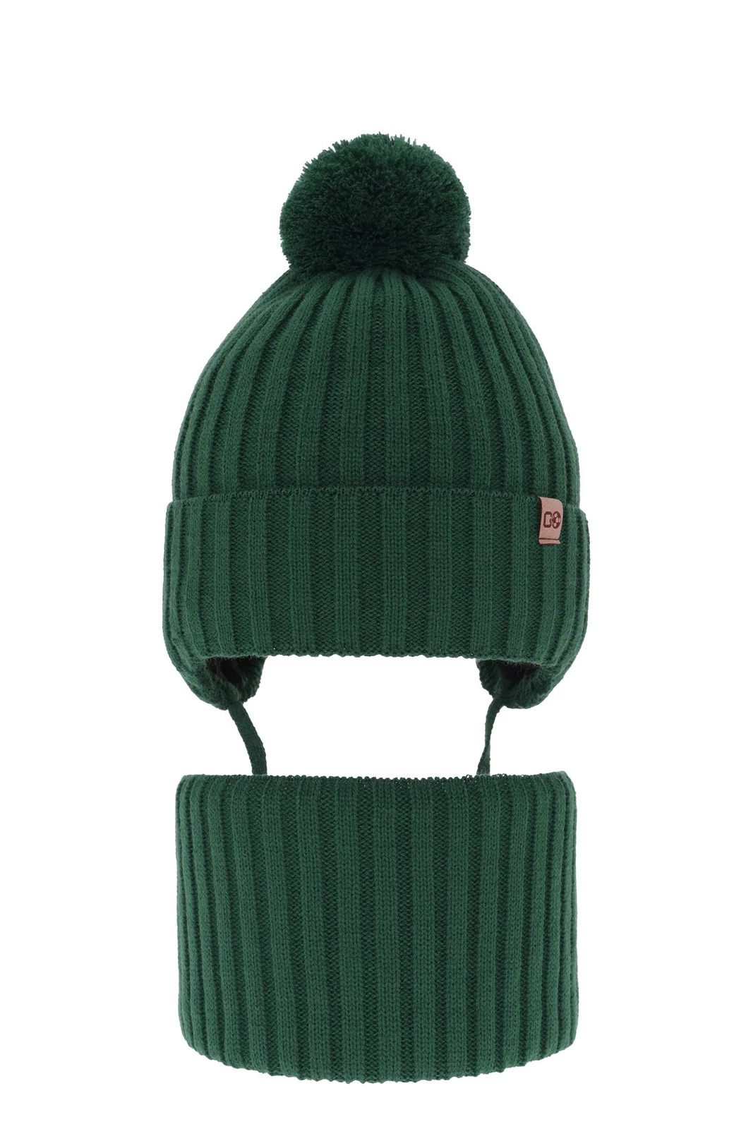 Czapka i komin dla chłopca zimowy komplet, szmaragdowy, z pomponem Carlo