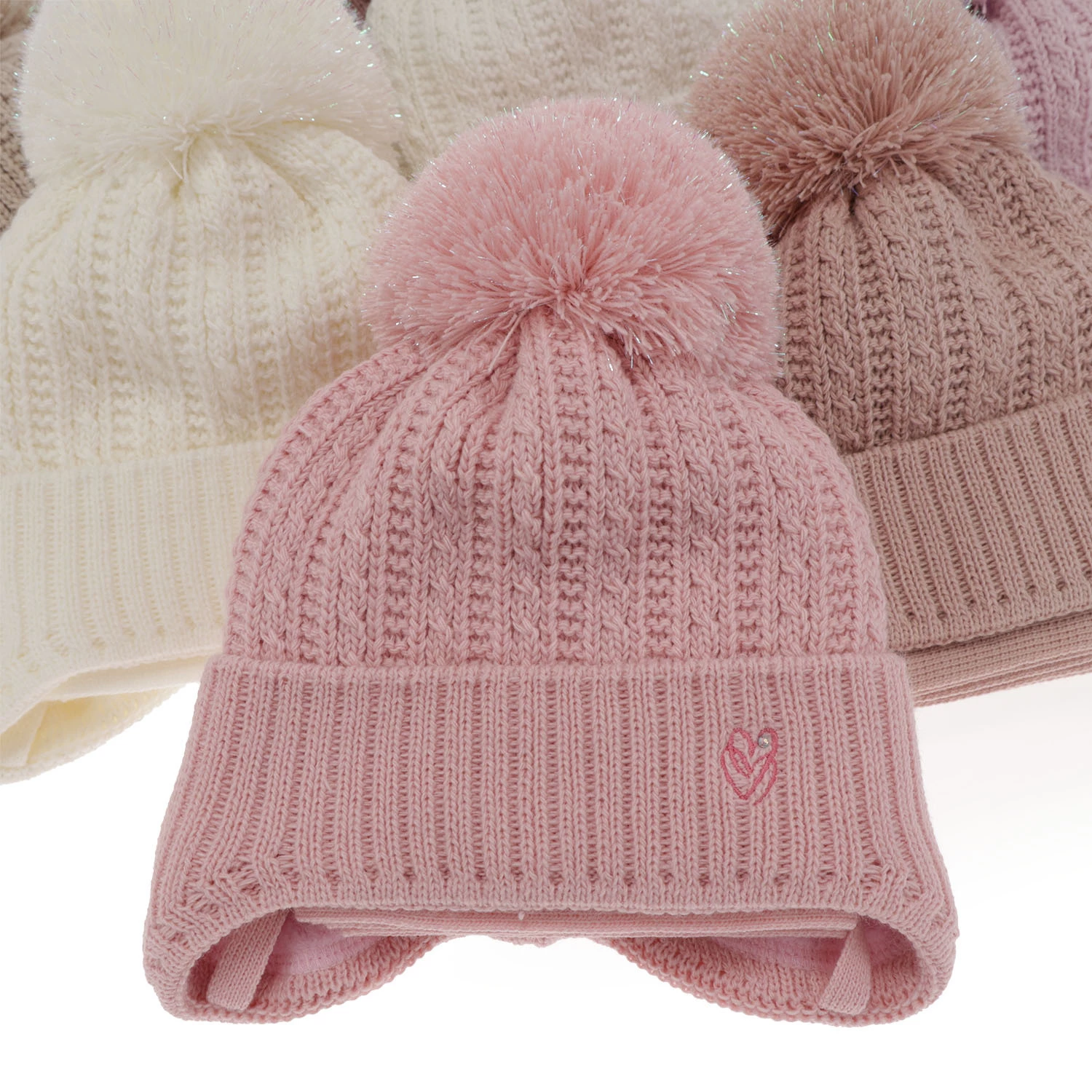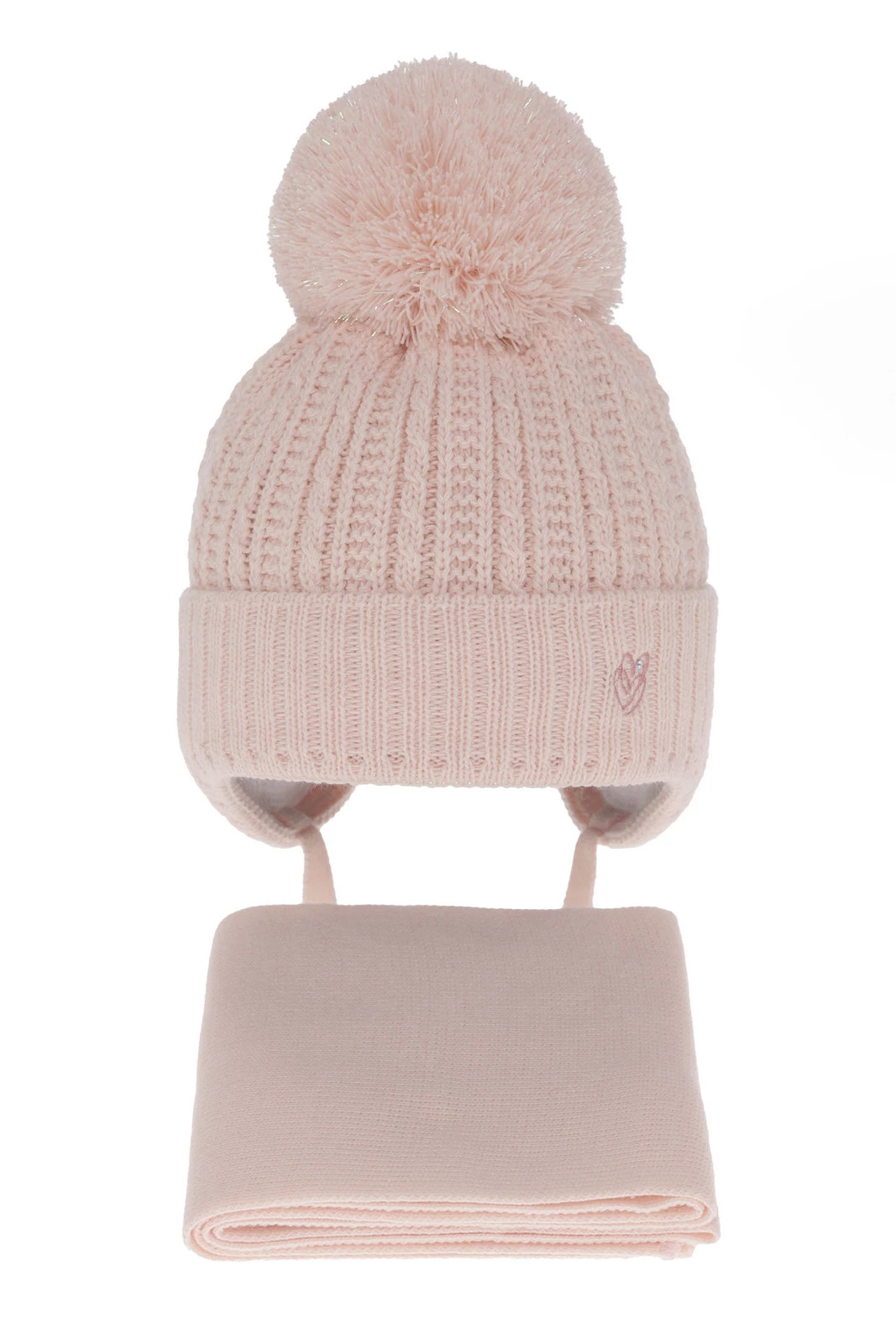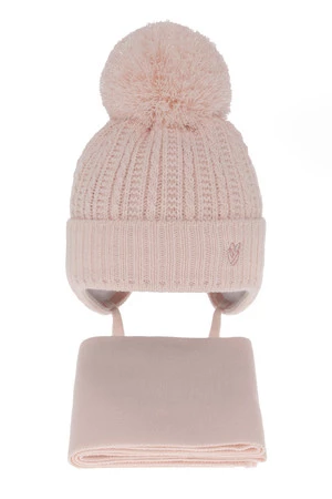 Czapka i szalik dla dziewczynki zimowy komplet, jasnoróżowy, wiązany, z pomponem Marisa