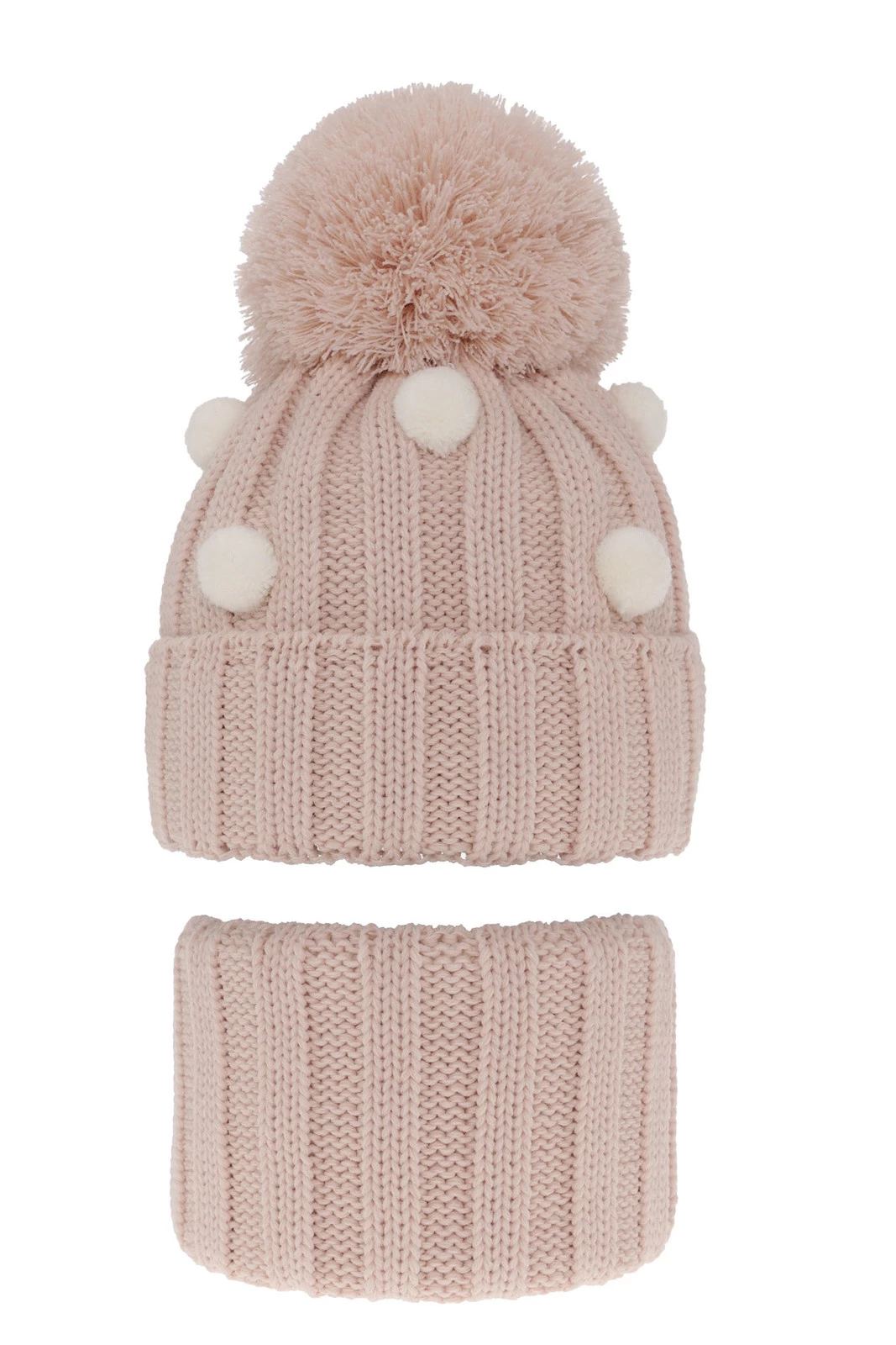 Czapka i komin dla dziewczynki zimowy komplet, jasnoróżowy, z pomponem Hekate
