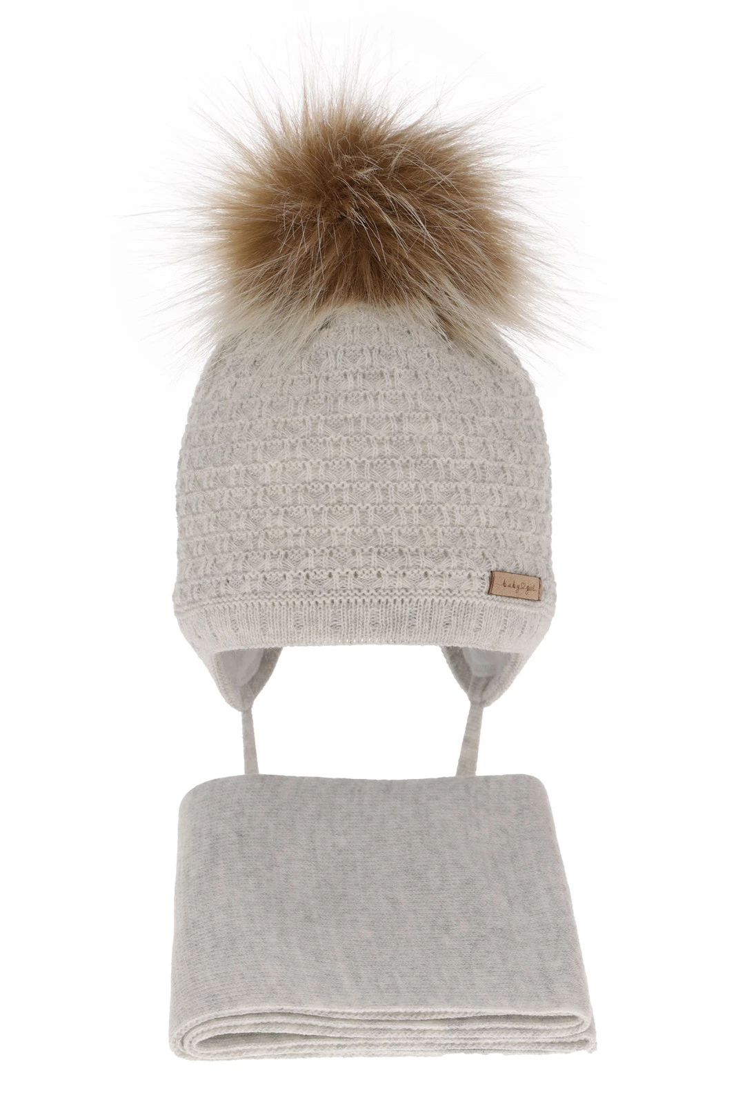 Czapka i szalik dla dziewczynki zimowy komplet, szary, z pomponem Clotilde