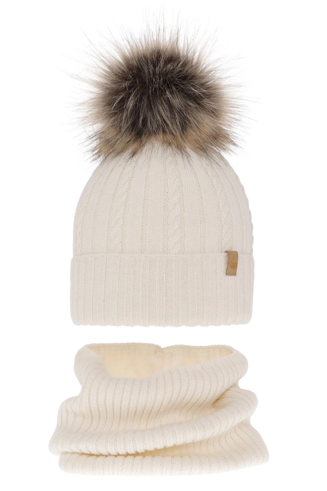 Czapka i komin dla dziewczynki zimowy komplet, kremowy, wełniany merino Mirabel