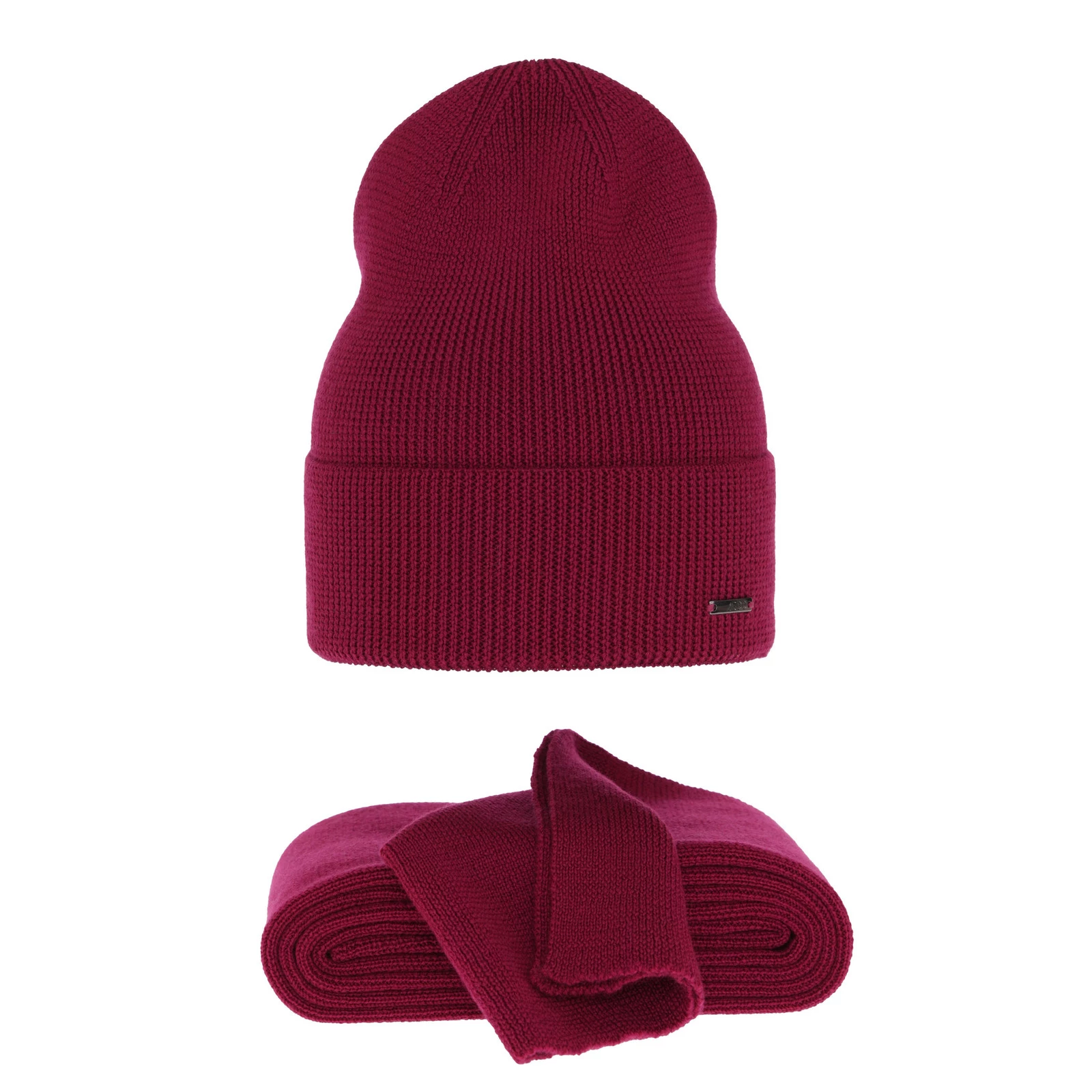 Czapka i szalik damski zimowy komplet, fuksja, 100% wełniany merino Melpomena