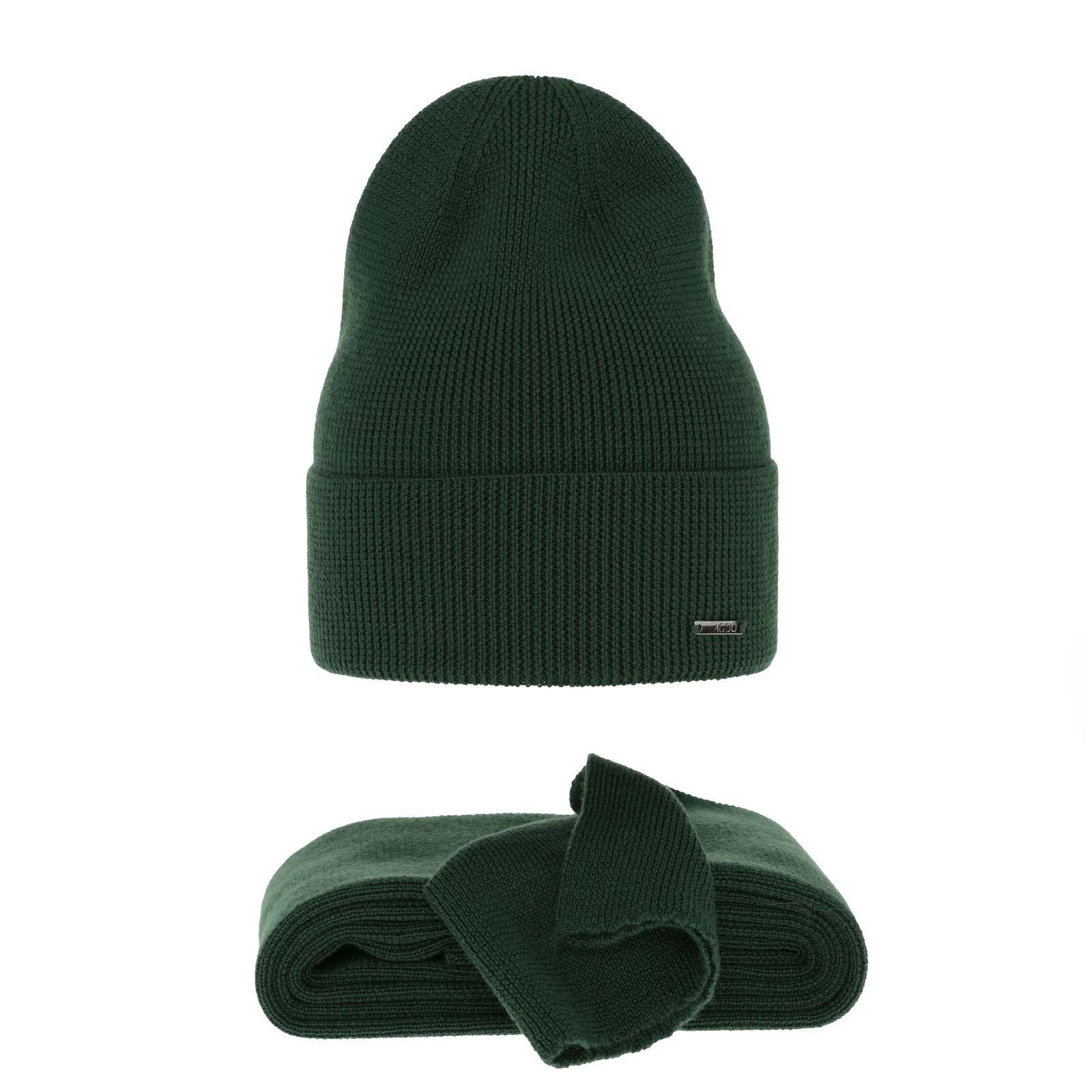 Czapka i szalik damski zimowy komplet, zielony, 100% wełniana merino Melpomena