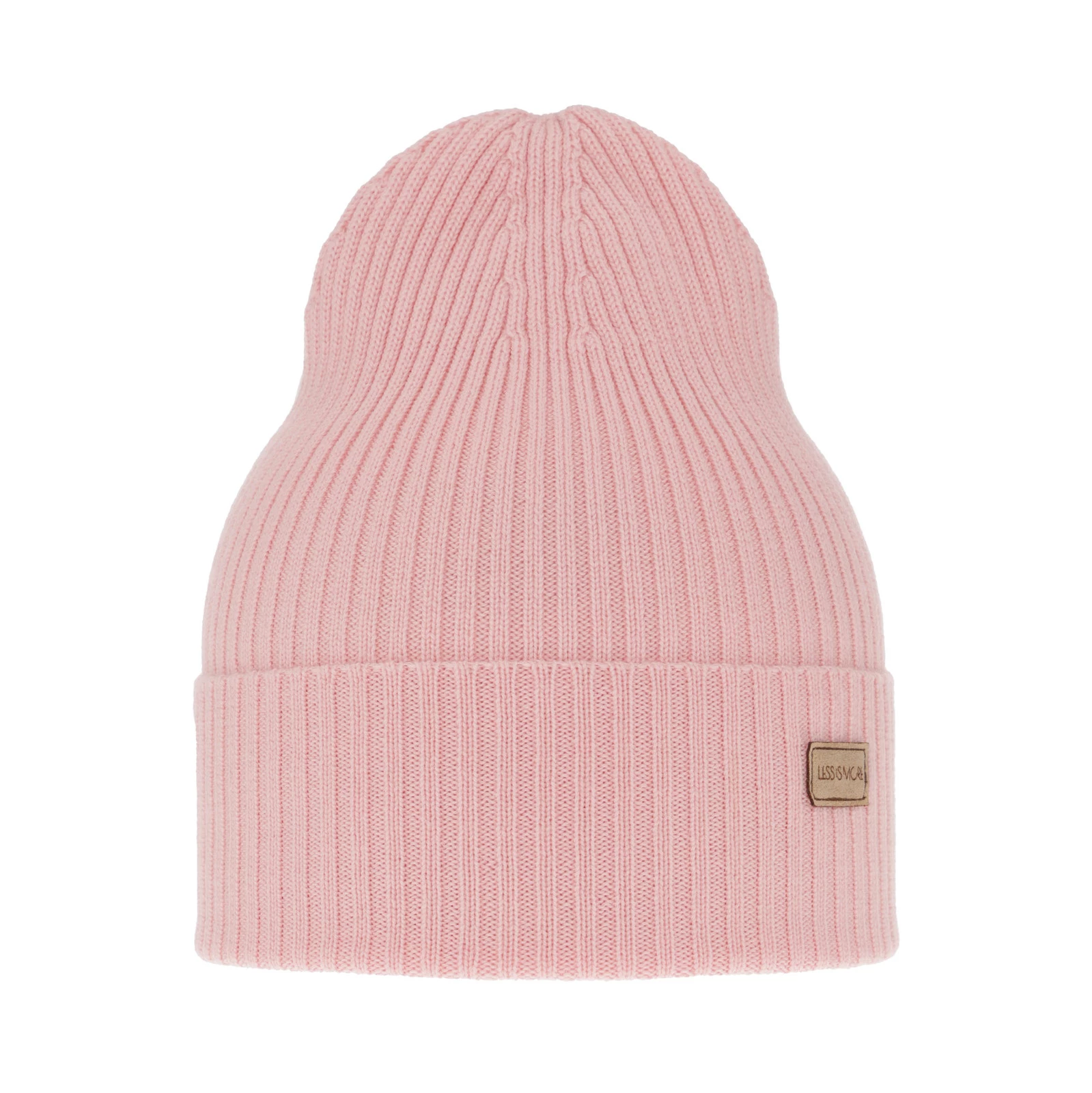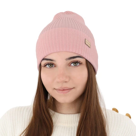 Czapka damska zimowa, jasnoróżowa, 100% wełniana merino Sophie