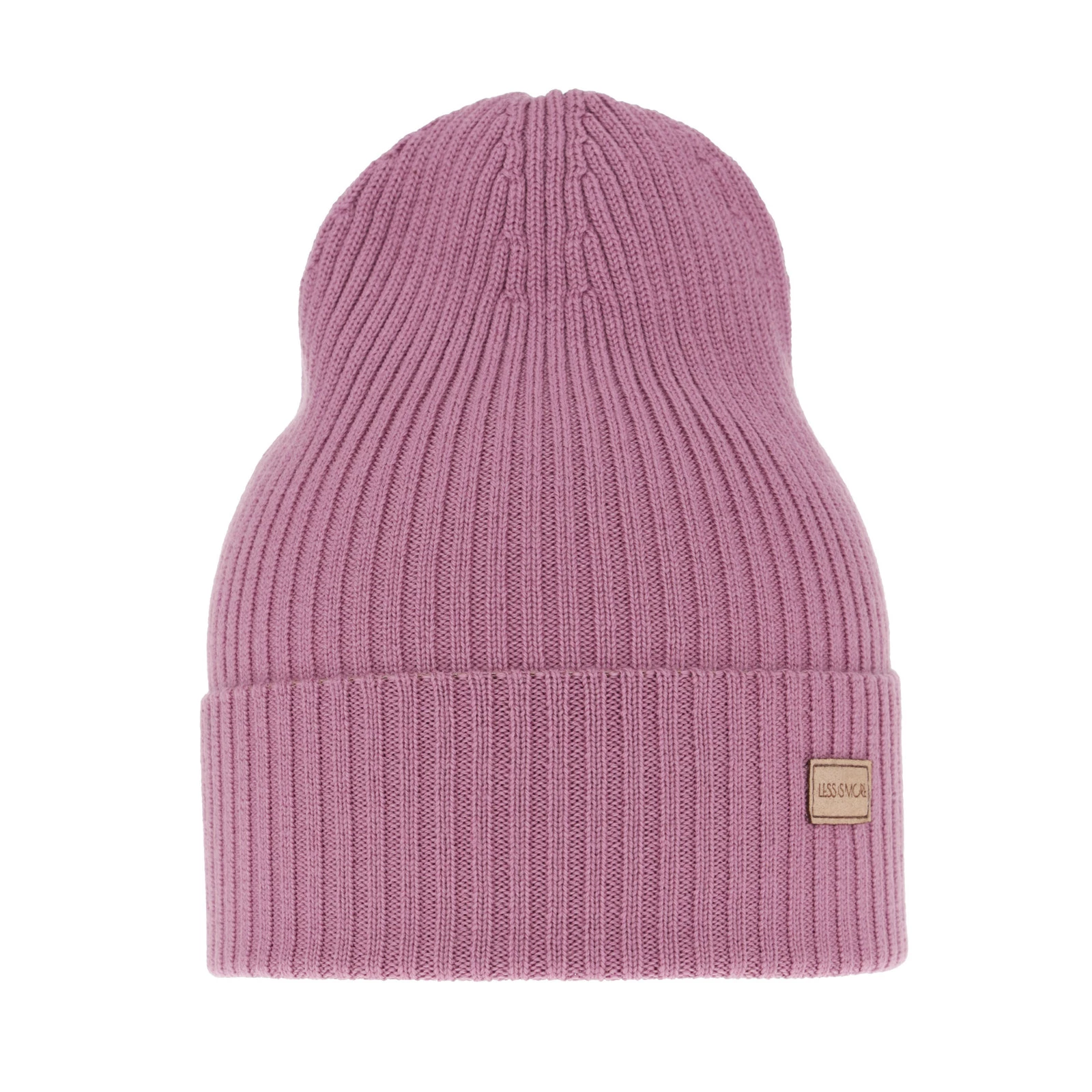 Czapka damska zimowa, wiosenna, fioletowa, 100% wełniana merino Sophie